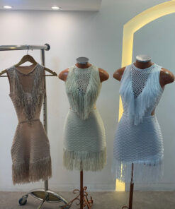 O Vestido Angra é a definição perfeita de sofisticação artesanal. Feito em tricot, ele combina textura e movimento em um design que valoriza o corpo com elegância. Seu charme único está nos detalhes de franjas de seda aplicadas no decote e na barra, criando fluidez e um balanço leve a cada passo.