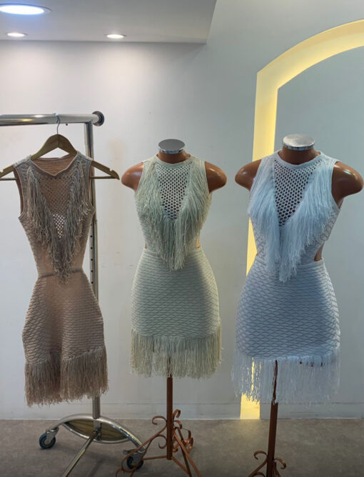 O Vestido Angra é a definição perfeita de sofisticação artesanal. Feito em tricot, ele combina textura e movimento em um design que valoriza o corpo com elegância. Seu charme único está nos detalhes de franjas de seda aplicadas no decote e na barra, criando fluidez e um balanço leve a cada passo.