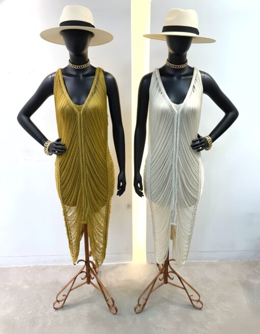 🪸 Vestido Bahamas – Luxo fluido com movimento e brilho na medida certa!
