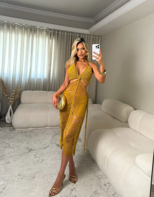 Brilho, movimento e sofisticação — o Vestido Búzios é a tradução perfeita do glamour tropical.