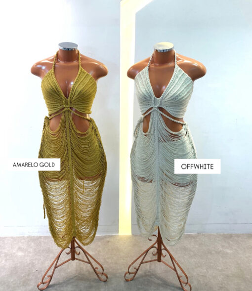 Feito em fio Rayon premium, ele tem um caimento leve e elegante, com franjas longas em seda que criam um efeito deslumbrante a cada passo.