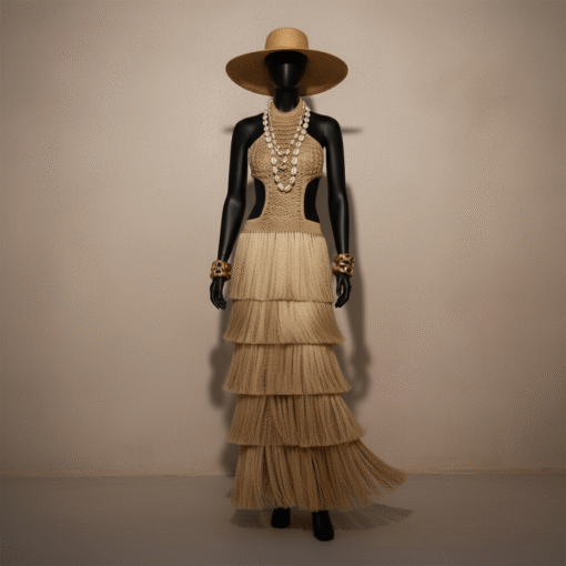 Feito em crochê com fio de seda de alto brilho, o vestido Capri é uma verdadeira obra de arte que valoriza cada detalhe do corpo feminino. Sua estrutura leve e fluida revela um caimento impecável, enquanto as camadas em espiral trazem um movimento hipnotizante a cada passo — um convite ao olhar e à admiração.